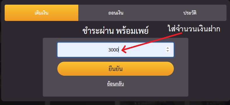 3. ใส่จำนวนเงินที่จะฝาก แล้วกด ยืนยัน